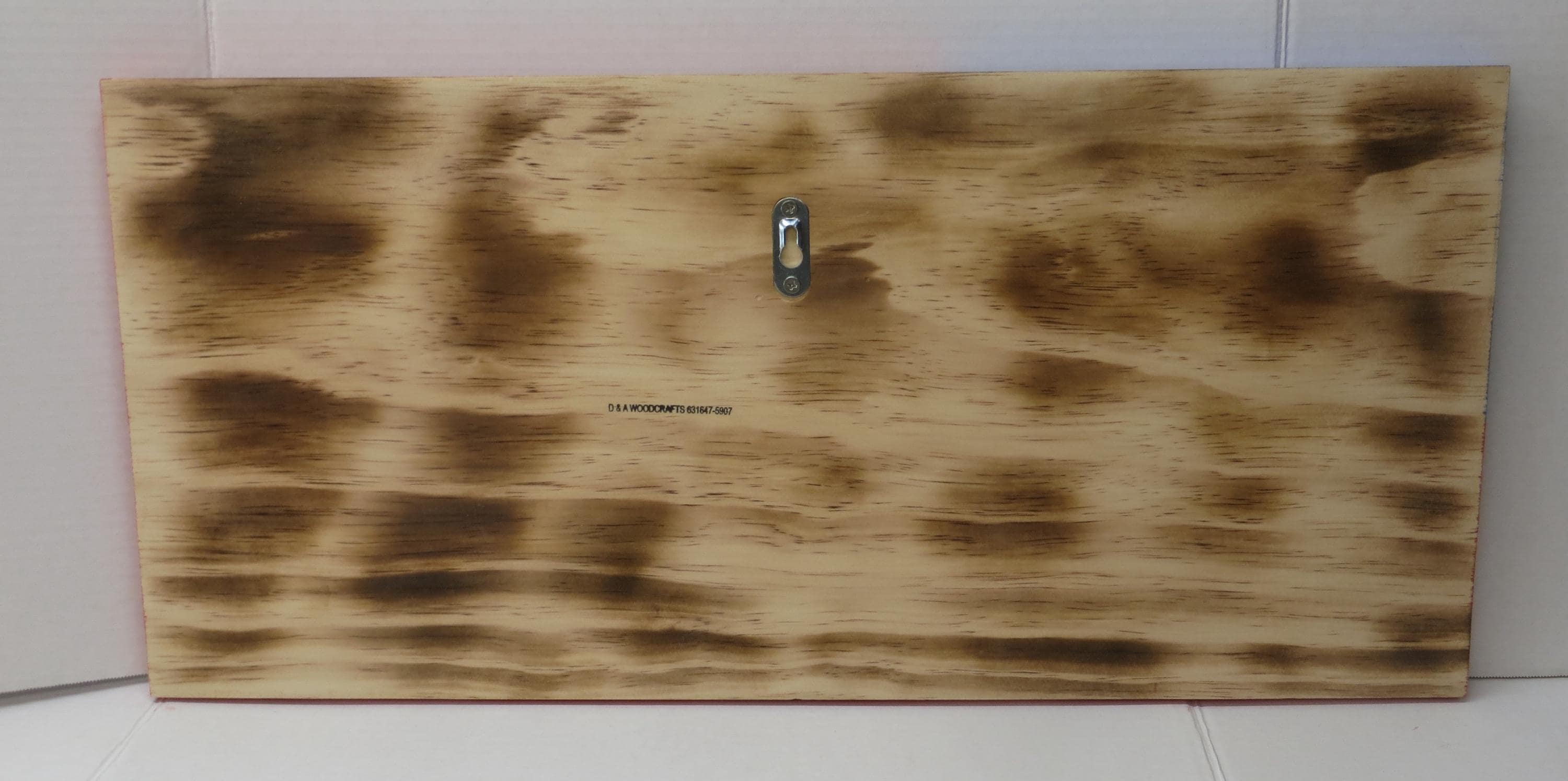 This flag is done on one piece of premium pine wood 23.78" x 11.25"x.75". Not plywood made from one-piece 3/4" thick piece of pine board. All our flags are handmade, they are sanded then painted, and some are hand burnt.